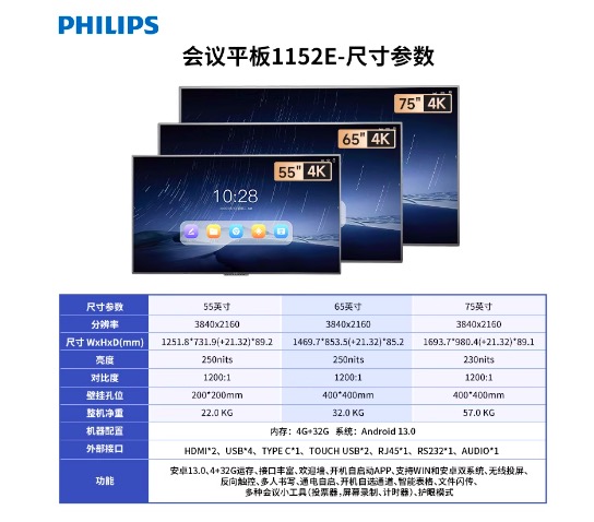 产品名称:飞利浦 55BDL1152E 会议平板 55英寸