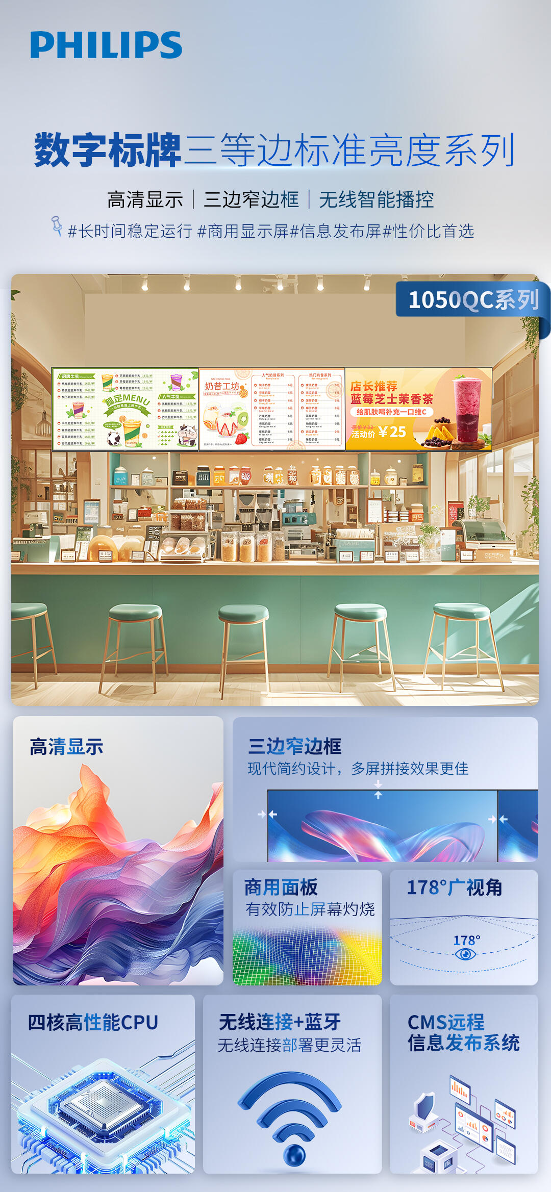 产品名称:飞利浦 55BDL1050QC 三等边数字标牌 55英寸