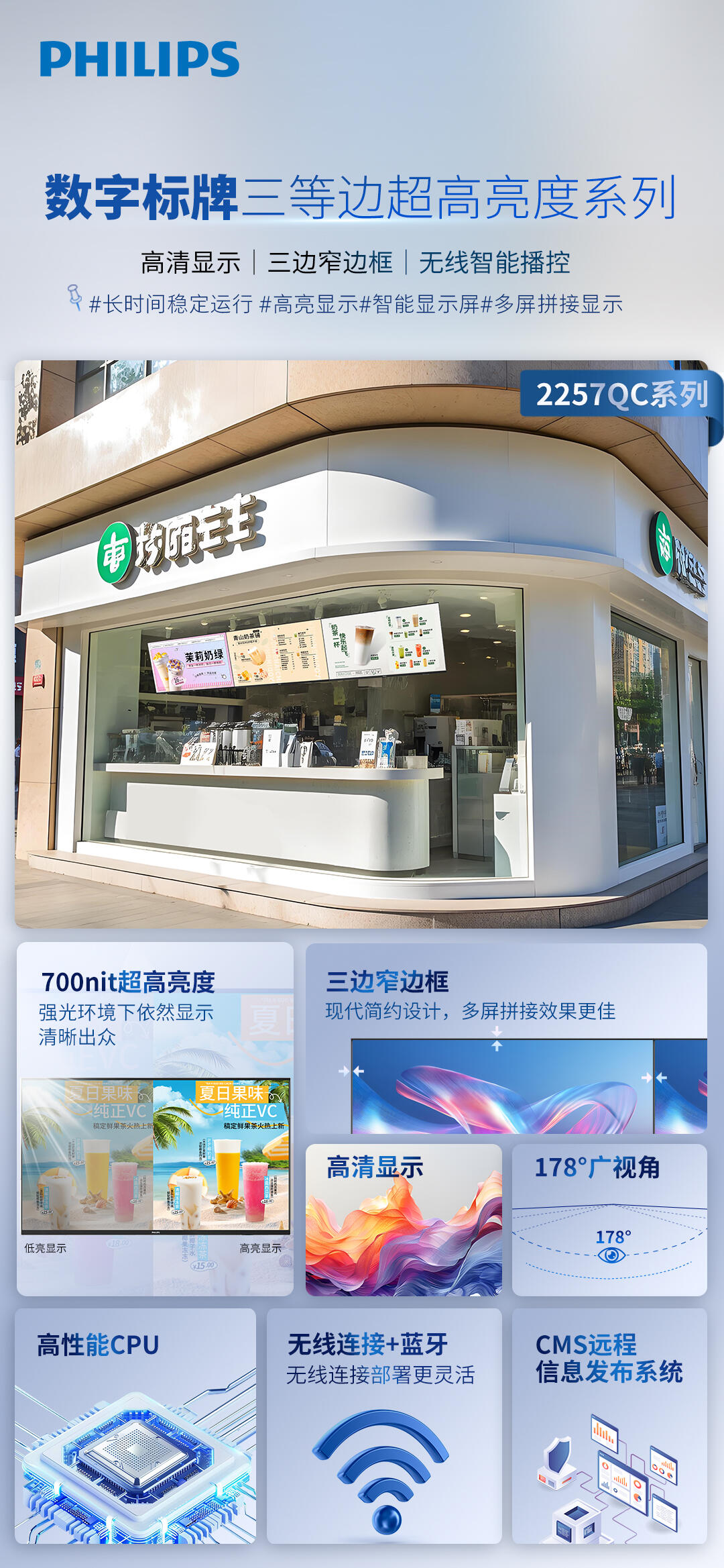 产品名称:飞利浦 43BDL2257QC 高亮商用显示器 43英寸三等边高